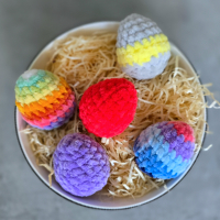 A minta tökéletes választás akkor is, ha a maradék fonalaidat szeretnéd felhasználni, hiszen csak kb. 8 g fonal és 3 g tömőanyag szükséges egy tojáshoz.