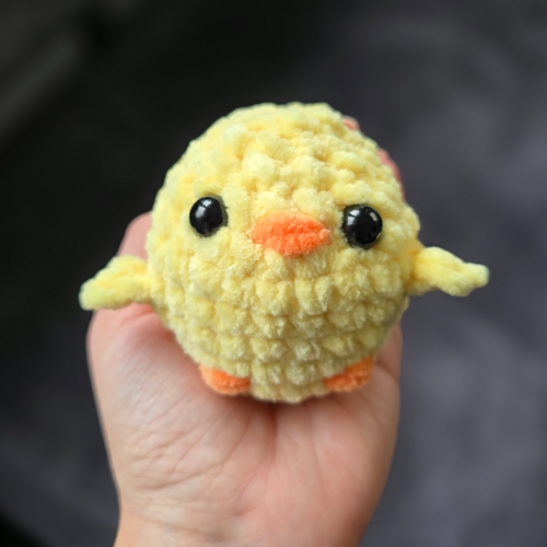A kész kiscsibe a javasolt fonal és horgolótű használata esetén kb. 6,5×9 cm.