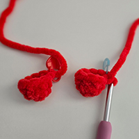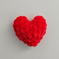A kész szív a javasolt fonal és horgolótű használata esetén kb. 5×5 cm.