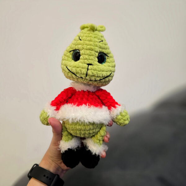 Ez a cuki horgolt Grincs csillogó szemekkel, mikulás szettben tökéletes ajándék lehet a Grinch rajongó gyerekeknek és felnőtteknek egyaránt.